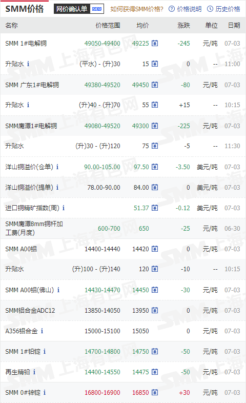 您現(xiàn)在所在位置:首頁?新聞資訊?行業(yè)新聞-俊霖合金解讀:7月3日有色金屬行情行業(yè)新聞