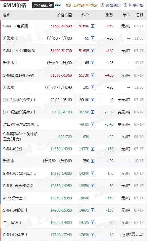 俊霖合金解讀:7月17日有色金屬行情