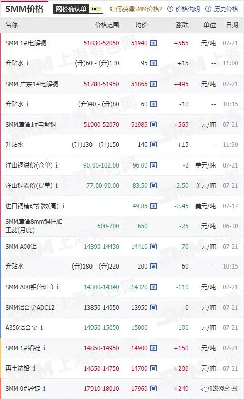 俊霖合金解讀:7月21日有色金屬行情